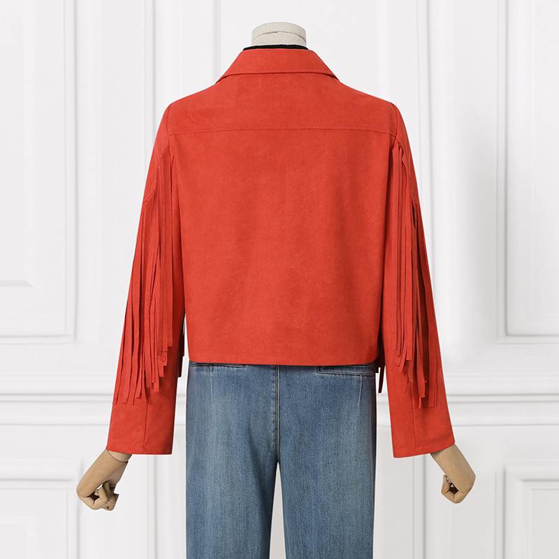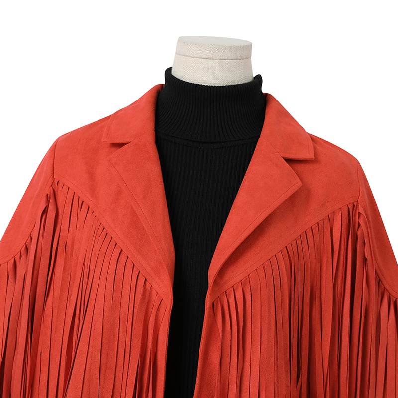 - Estilo: jaqueta com babado terracota