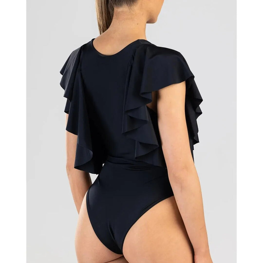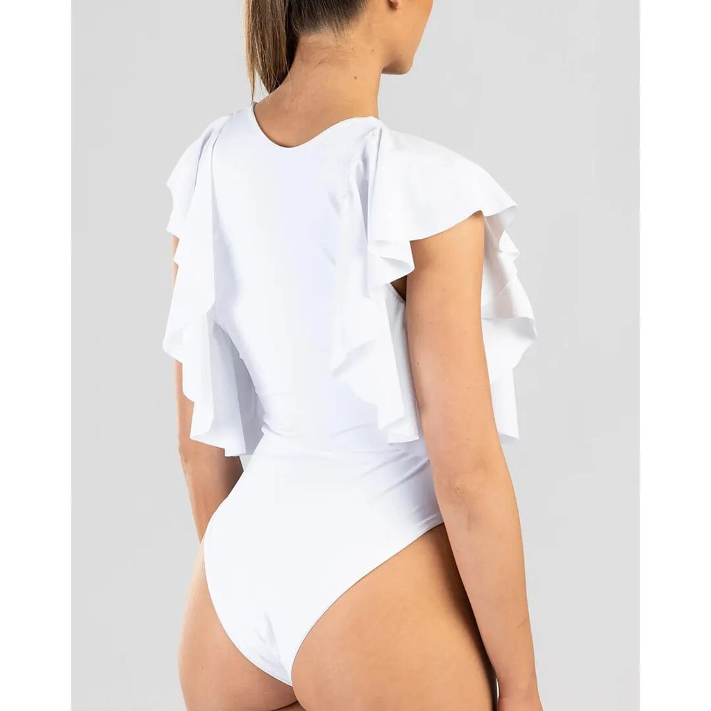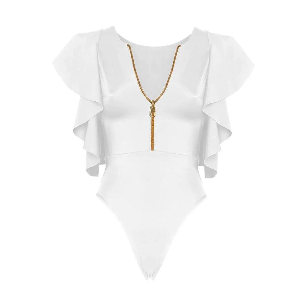 Maiô Teresa com Decote em V Babado no Ombro Fecho Frontal em Zíper